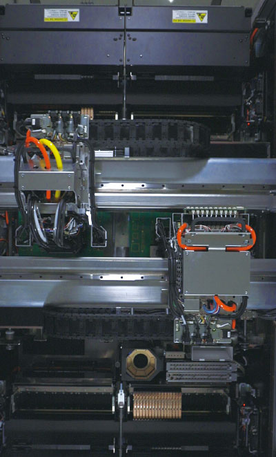 通过采用Σ系列产品的跨区运行技术,使得2个贴装头的干扰区域达到最小,提高了生产效率。