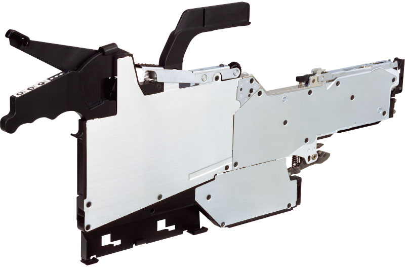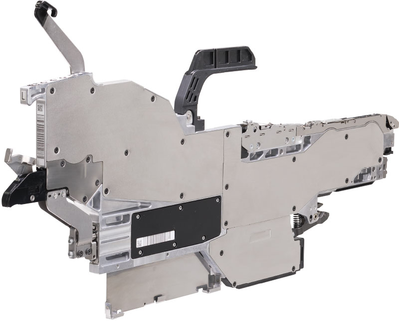 新开发出一种不用停止设备、只需插入料带、就可以补充料带元件的Auto Loading Feeder。采用雅马哈独创的中央开放方式,降低了因绒毛及剥离带电所导致的元件吸取失误。而且,不需要实施端头料带的回收处理作业,使得设备的运转率大幅提高。
