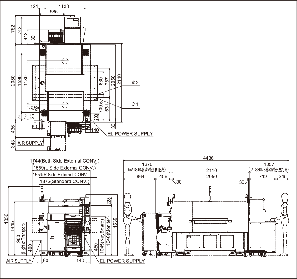※2:1~4轨间的传送带距离为630mm规格。