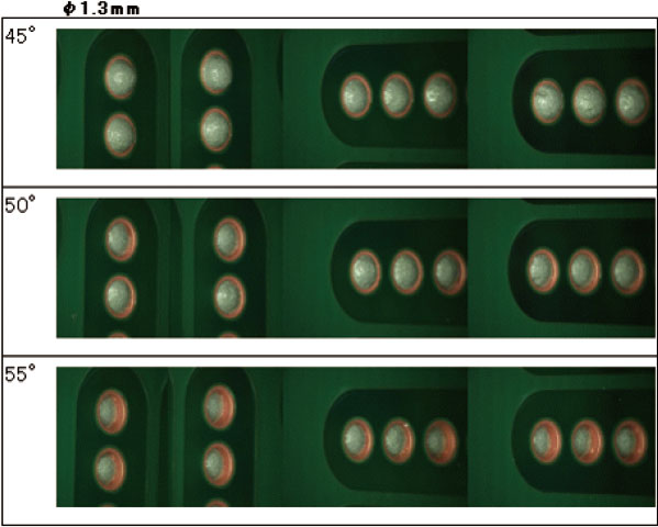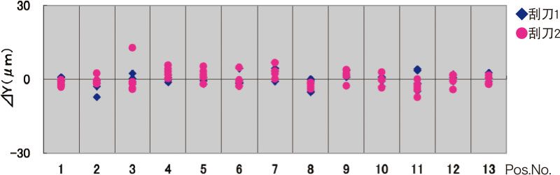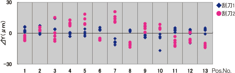 可通过程序,对刮刀的刮印角度(45~65°、1度为单位)和速度进行任意设定和变更,可以根据所使用的锡膏,在最佳条件下进行印刷。