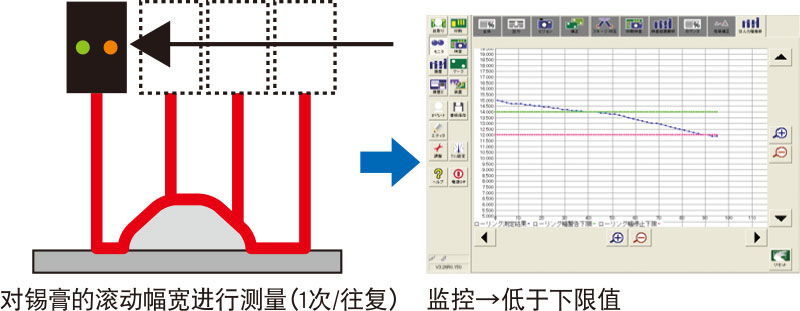 可定期(1次/往复)对网板上锡膏的滚动幅宽进行检测,并通过报警等功能,防止操作人员错过补充时机或忘记补充。