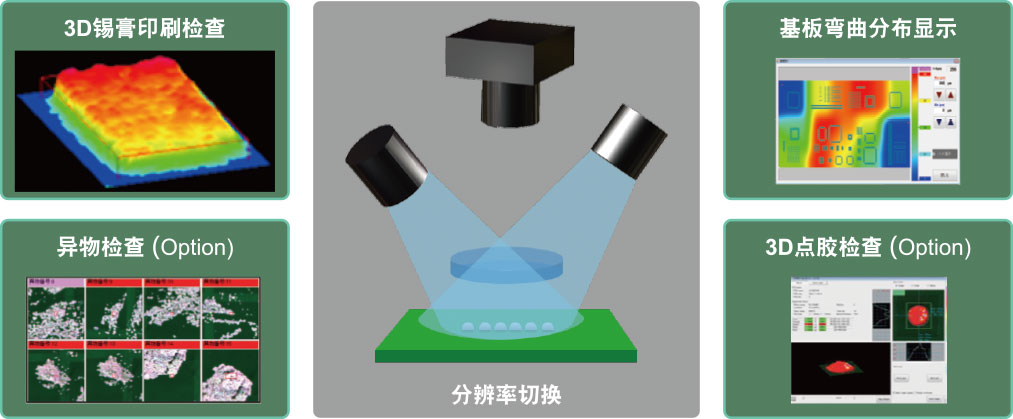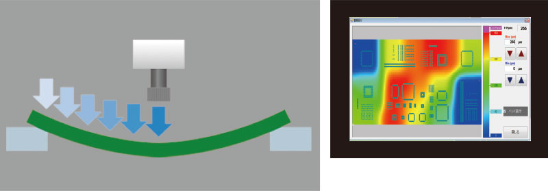 通过自动调焦,可以追随±5mm的基板弯曲,对相机高度进行补正。