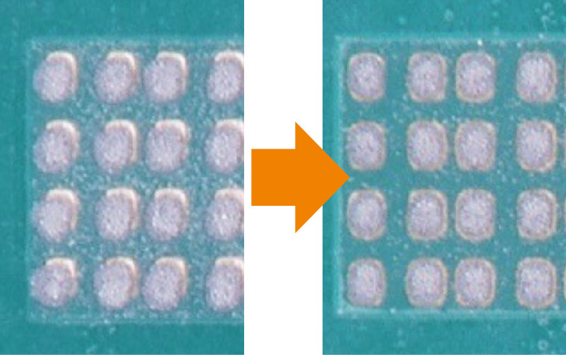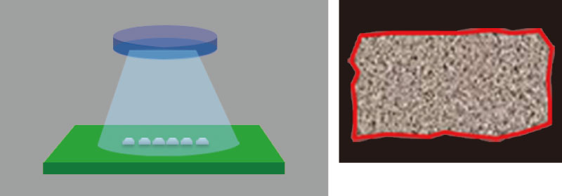 采用2D环状照明,能够正确识别锡膏的轮廓,从而对面积进行测量。