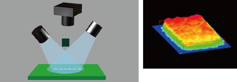 通过采用相位变换法,可以对锡膏的高度进行测量,从而导出体积值。