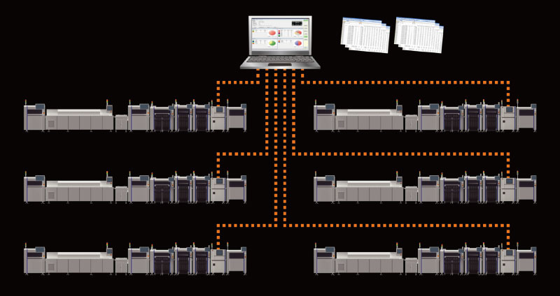 贴装生产所必要的主力设备,仅选用雅马哈一个品牌就能够包揽,通过SPI与各种设备的互联,可以构建生产效率进一步增强,品质更加优良的生产线。