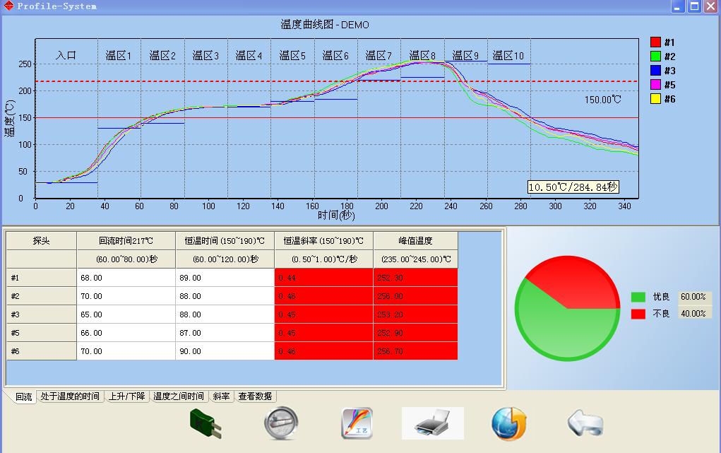 ※ 自动显示各通道峰值温度,自动判断峰值温度是否在工艺要求内。