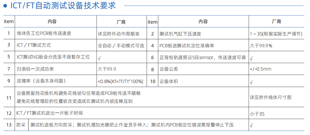 • In Line ICT双层FCT设备自身配备提升机,两套测试系统同时工作,可以提供一倍的效率。